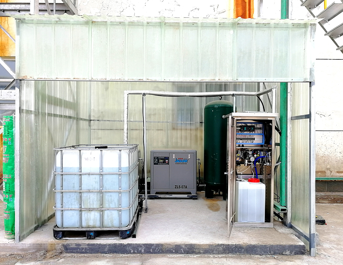 尿素溶液制備系統,因部分項目作為主力電站運行,尿素溶液使用量大,為降低運營成本需增加尿素溶液制備系統。尿素制備系統的控制系統采用PLC控制系統,該系統可以獨立運行,實現制備系統的現場操作,可監視尿素溶液儲存罐液位、泵出口流量、溫度及壓力等信號。散裝尿素顆粒經汽車運輸至尿素制備區,起重機及人工拆袋投放到尿素溶解配制罐。使用溶解罐內的蒸汽盤管將溶解水加熱至所需溫度,自動控制溶解水溫度。 啟動攪拌器,固體尿素經人工拆袋后投放到尿素溶解罐進行溶解,配置成32.5%濃度的尿素溶液。