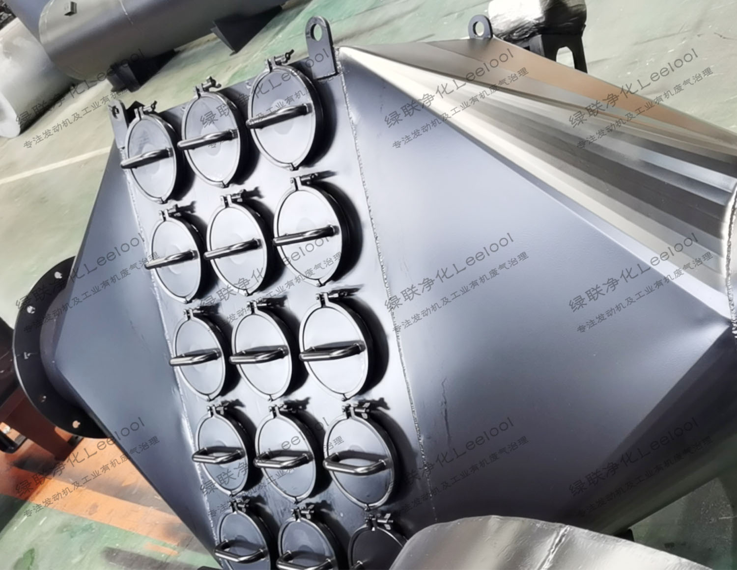 綠聯凈化L-DEZS系列重型柴油機尾氣干式顆粒物捕集器是由綠聯凈化技術(東莞)有限公司技術團隊采用國際先進的吸附及催化氧化工藝,潛心自主研發并擁有全部知識產權的新型柴油機尾氣處理裝置,屬于第三代柴油機黑煙凈化器。通過多組金屬DPF載體并聯組成柴油機尾氣顆粒捕捉器,采用卡扣固定可抽出單元式設計,當堵PM碳顆粒物塞造成高背壓時,由電子壓力傳感器感知壓力信號傳送給電控系統報警并打開旁通,可以靈活抽出過濾單元進行水洗再生,工作時不消耗任何能源。具有處理效率高、開機被壓小、堵塞時間長、再生清理方便快捷、直接吊裝安裝方便、全身采用不銹鋼使用壽命長、具有降噪功能、無電能損耗、自動旁通報警安全系數高等優點。